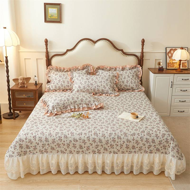 夹棉床盖三件套水洗棉被套四件套小竹棉防滑床罩公主风床裙床上用