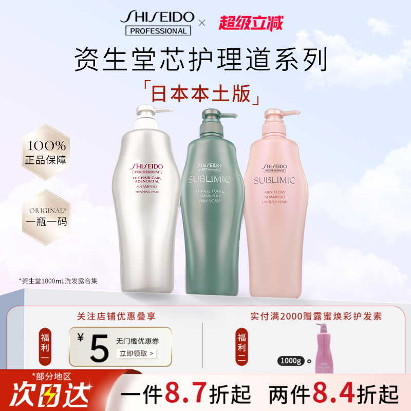 日本资生堂芯护理道轻盈丝逸洗发水500ml头皮生机洗发露1000ml