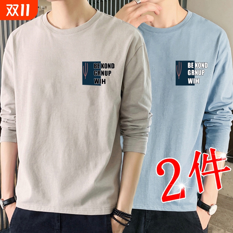 260G重磅长袖T恤男春秋宽松大码简约印花美式潮牌圆领打底衫男装