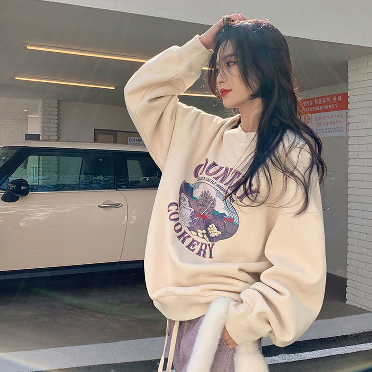 EUins超火加绒加厚卫衣女休闲百搭秋冬潮韩版学生宽松圆领外套代
