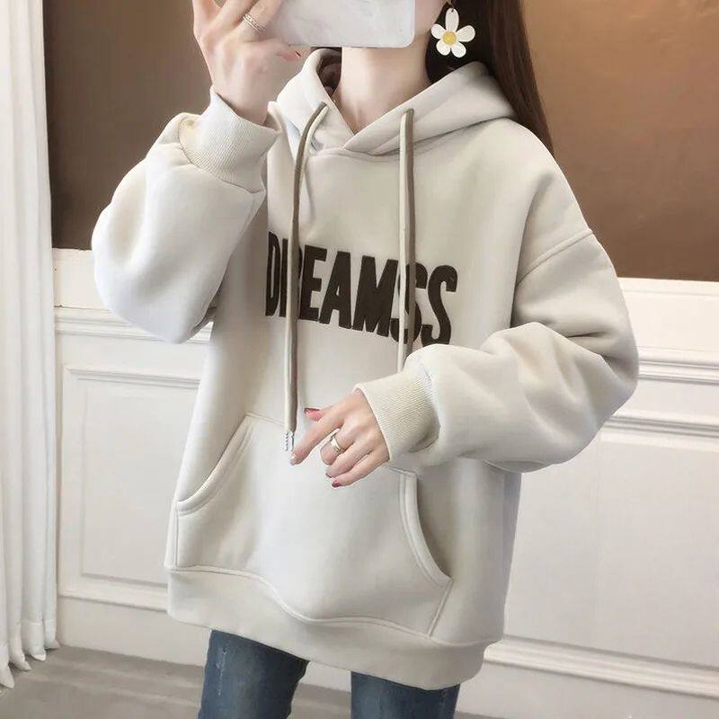 连帽卫衣女春秋冬季新款韩版学生宽松加绒新款百搭外套上衣ins潮