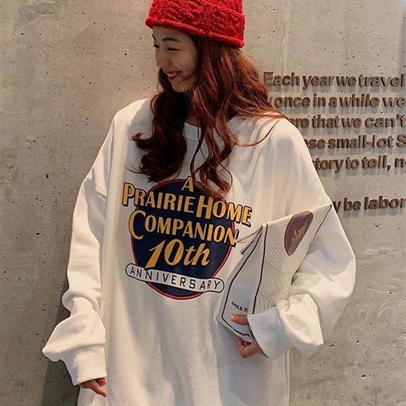 美式复古圆领卫衣女早秋薄款韩版宽松无帽外套潮ins学生百搭上衣