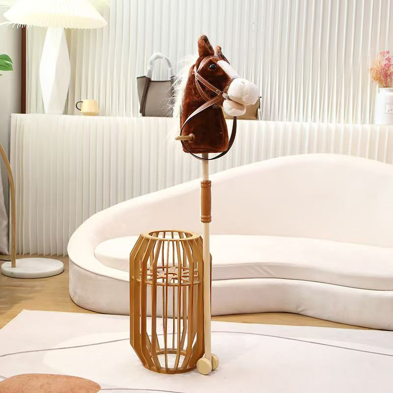 出口单马头棒网红木质摇马儿童玩具儿童摇马毛绒马头棍幼儿园道具