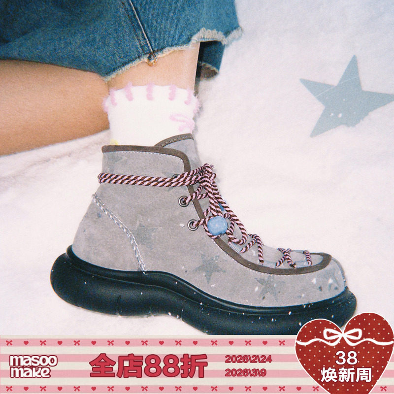 玛速主义2026年春季新款时尚厚底时装靴圆头百搭短靴休闲增高单靴