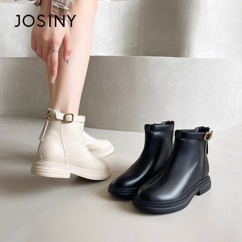 卓诗尼靴子秋冬新款单靴通勤百搭时装靴女厚底加绒短靴女圆头单靴