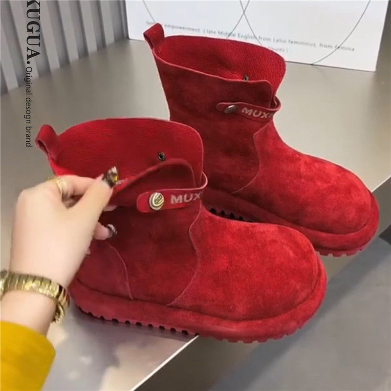 2025秋冬新款真皮圆头软底厚底短靴马丁靴女靴加绒棉靴单靴子女