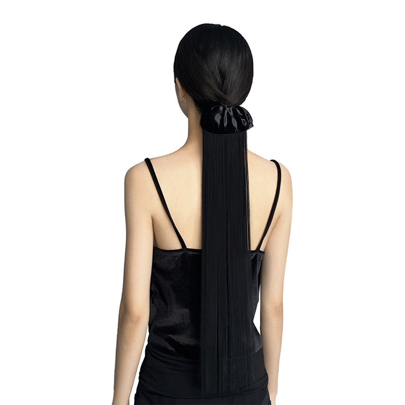 香茅咕咕原创设计多功能黑色流苏大肠发圈小众暗黑发绳搭礼服发饰