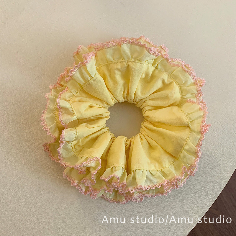 韩系黄色加大号流苏花边双层大肠发圈女扎头发丸子头皮筋发绳头绳