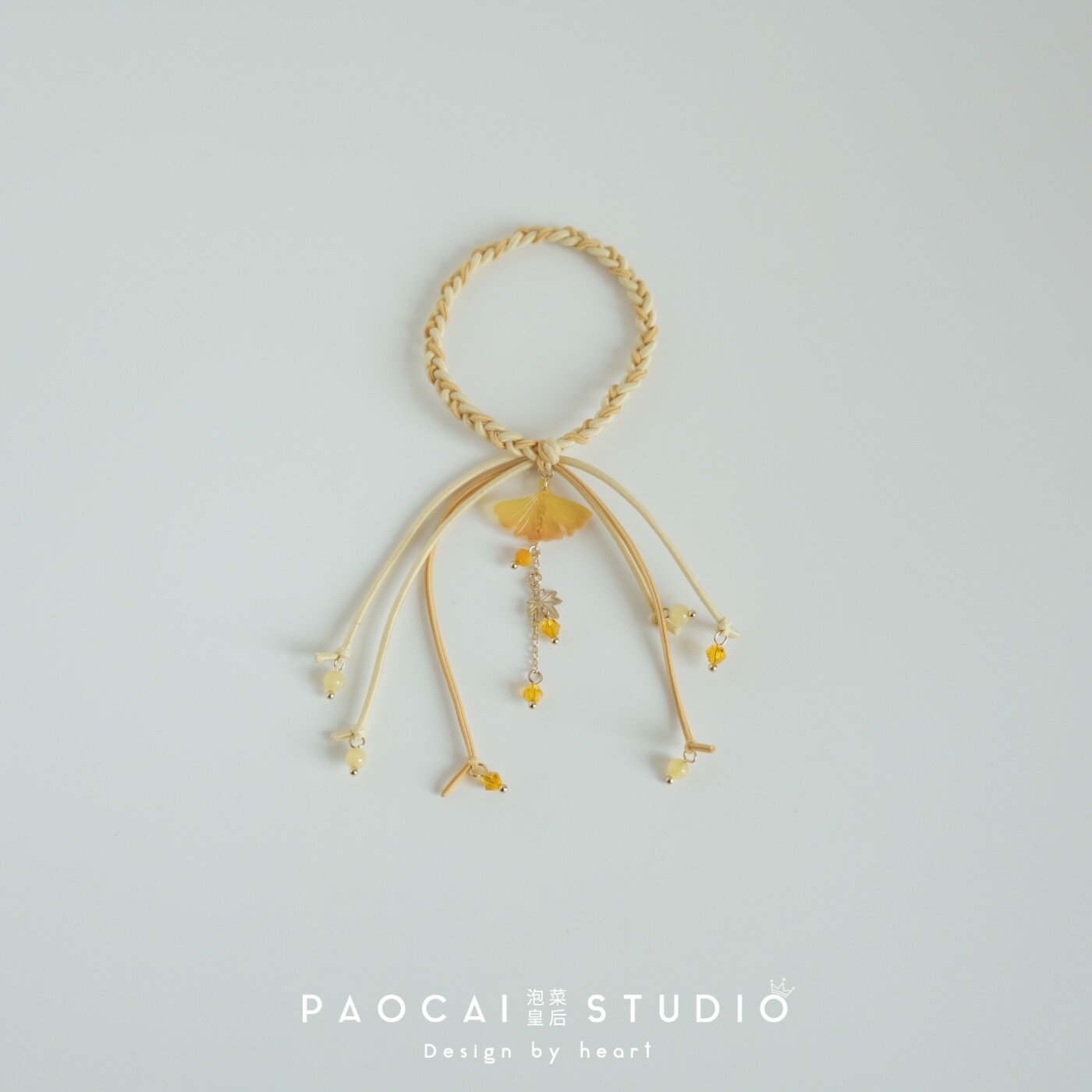 原创秋冬银杏树叶流苏发圈甜美可爱少女橡皮筋发饰发绳头绳头饰品