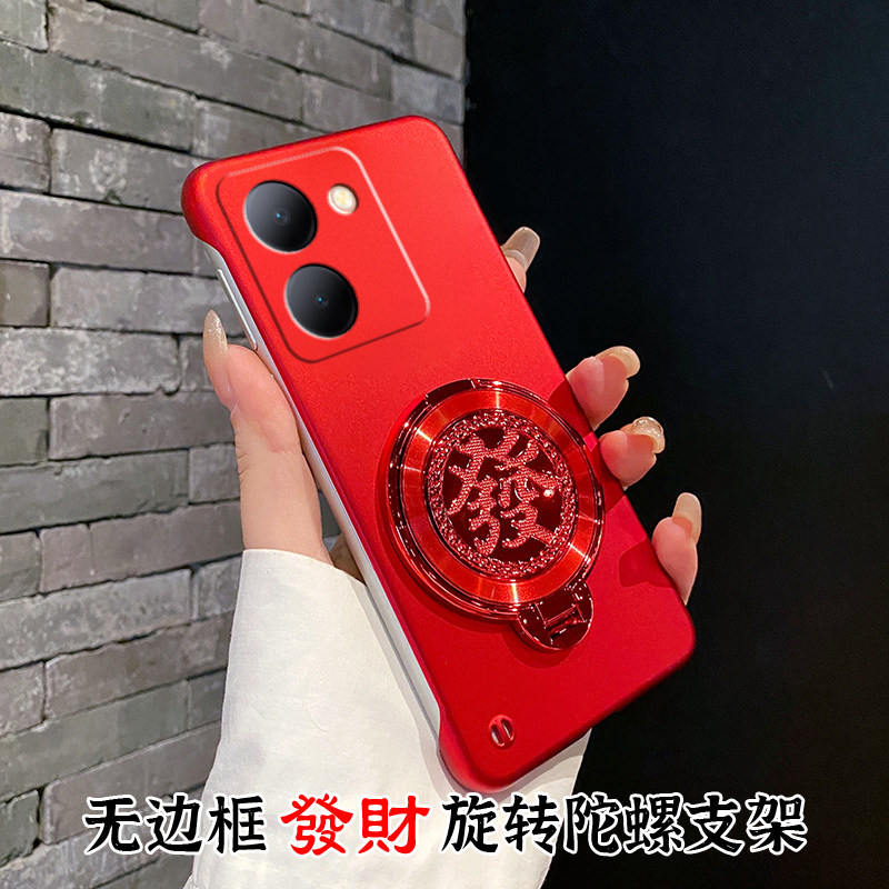 vivoY78手机壳新款无边框创意女硬壳5G2025新年款Y78+高端中国红Y27发财旋转陀螺支架Y36防摔超薄保护适用于
