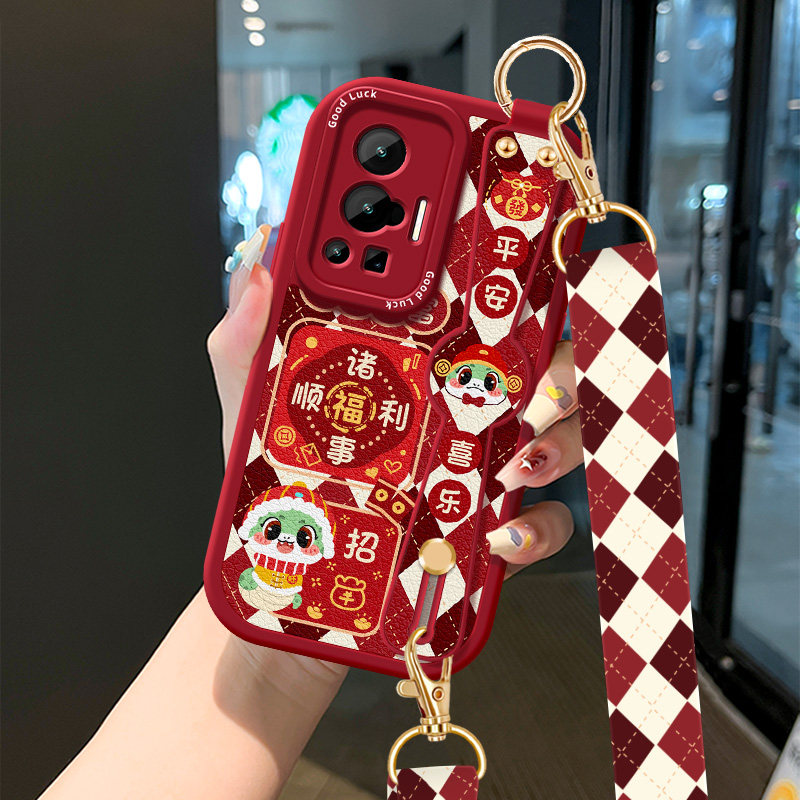 适用VIVOY37m手机壳新女款y200腕带挂绳X70T蛇年大吉x50国潮y78防摔x60pro+全包x27过年保护套硅胶软可背斜挎
