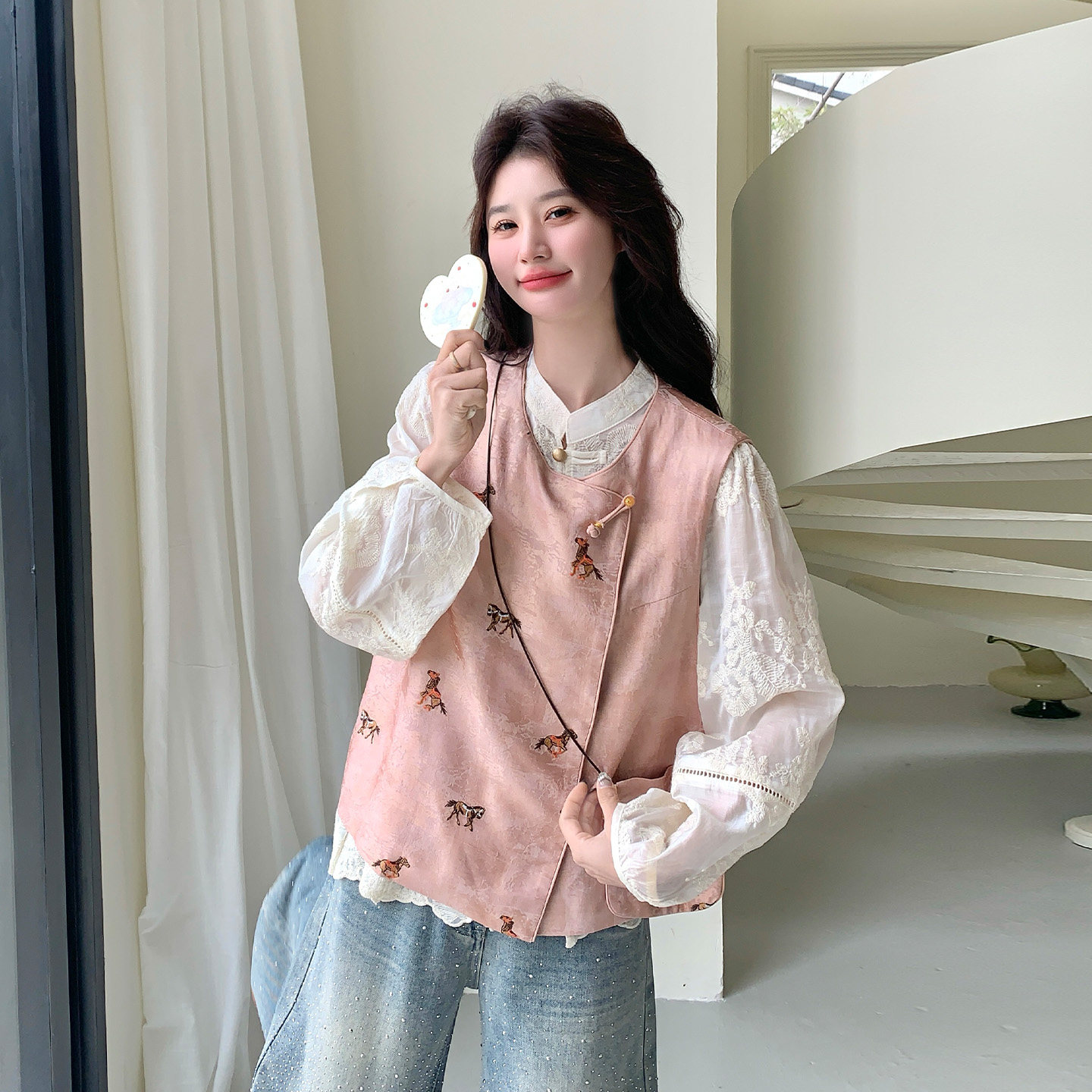 2026年春季新新中式国风女装独特漂亮穿搭一整套马甲打底衫两件套