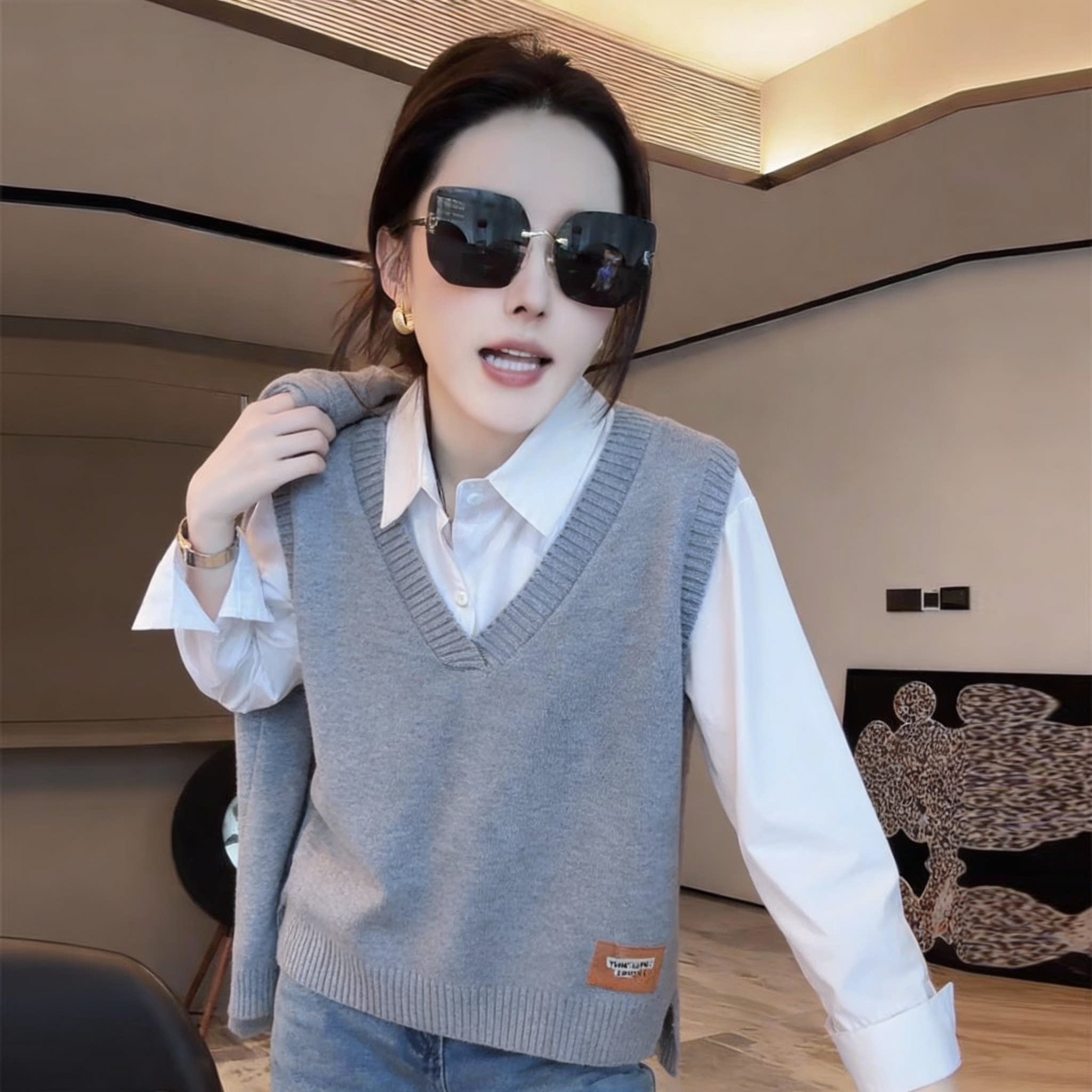 - 衬衫马甲套装女