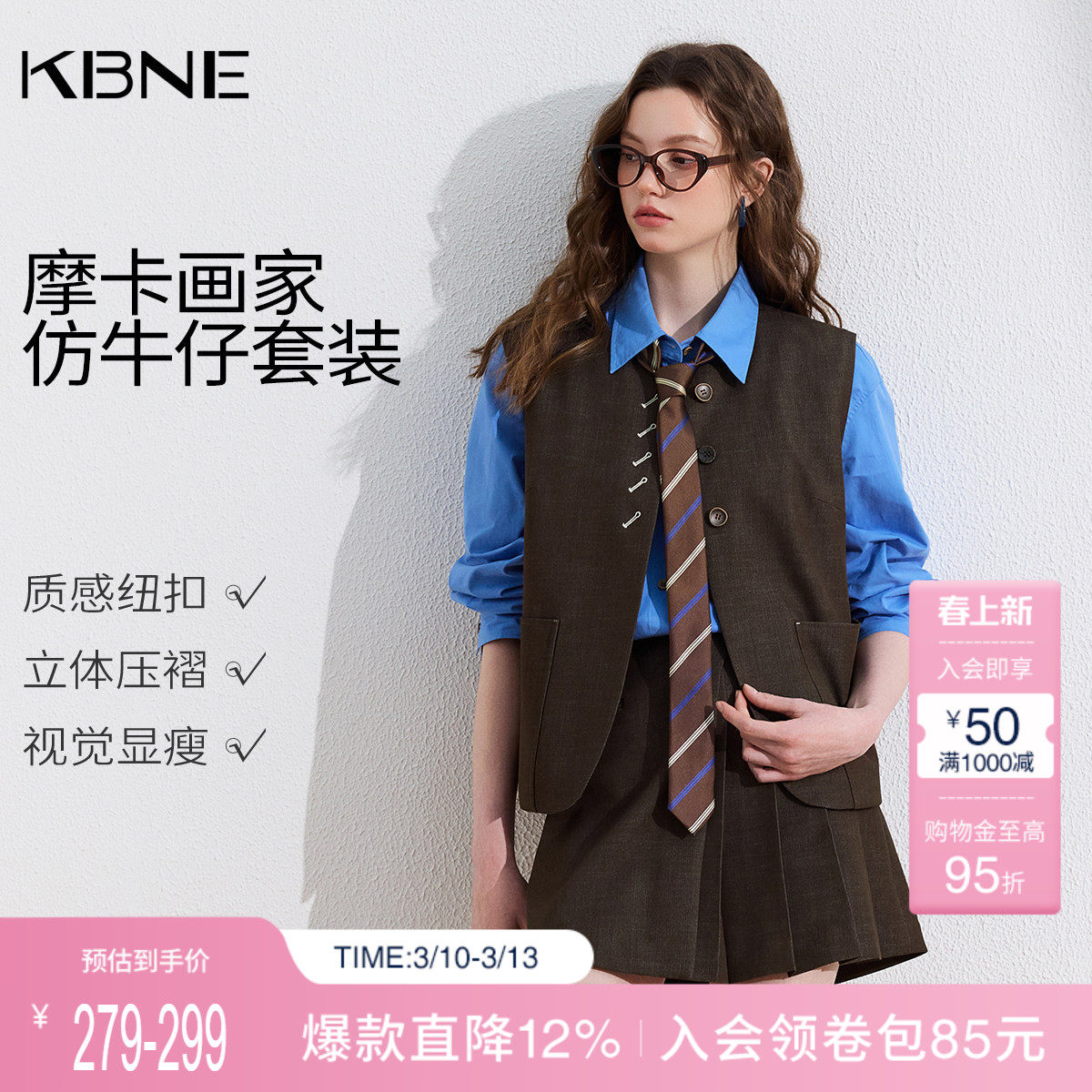 KBNE复古学院风马甲套装女2026春季新款气质套装裙子两件套一整套