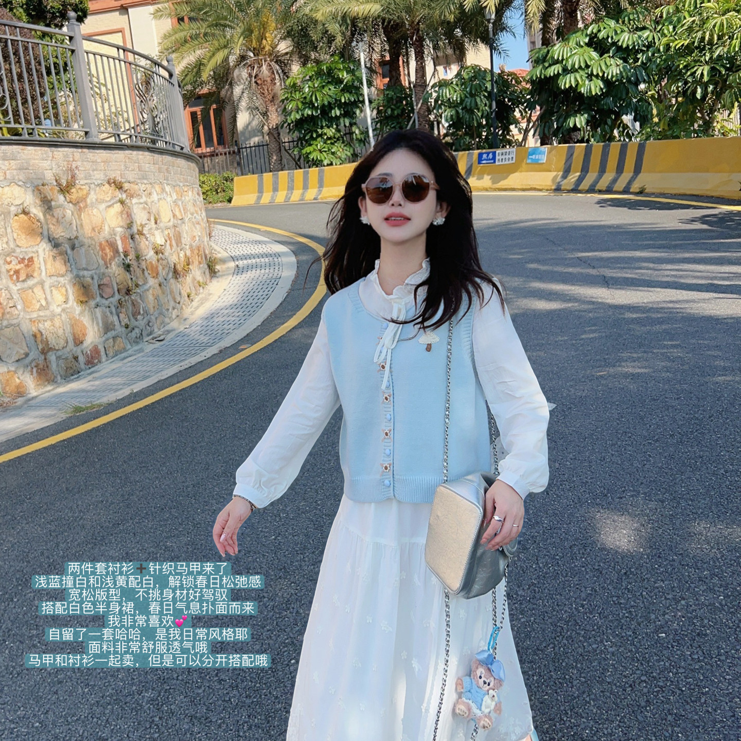 小小家 小个子春新款针织马甲+长袖衬衫两件套显白日常百搭套装