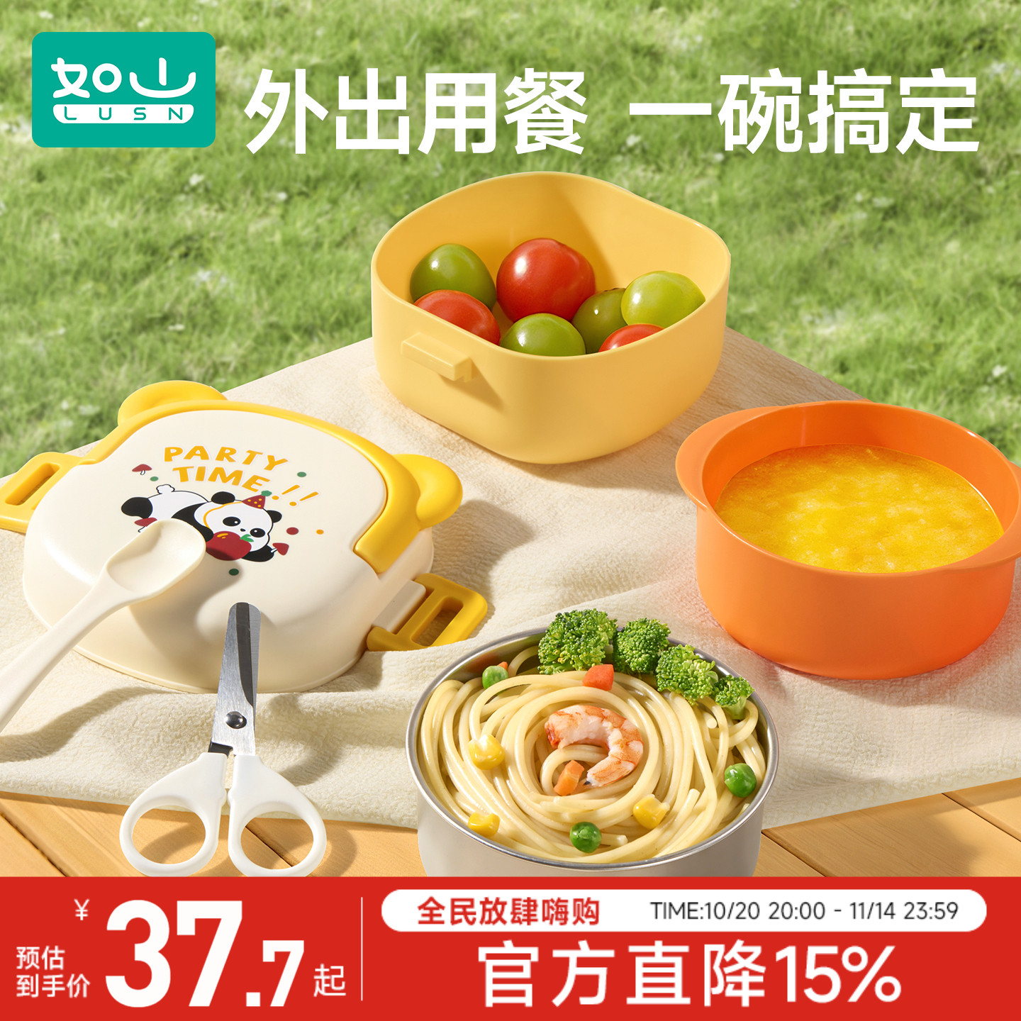 如山外出便携辅食碗儿童碗勺剪刀防摔防烫小孩吃饭碗宝宝餐具套装