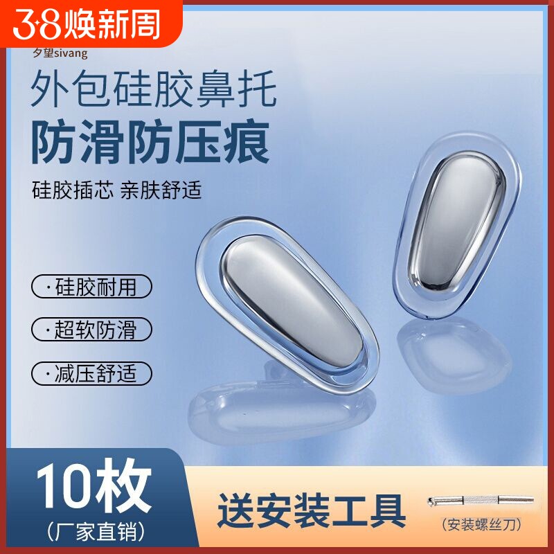 眼镜鼻托硅胶防滑螺丝卡扣套插入眼睛配件软金属支架气囊防压痕垫