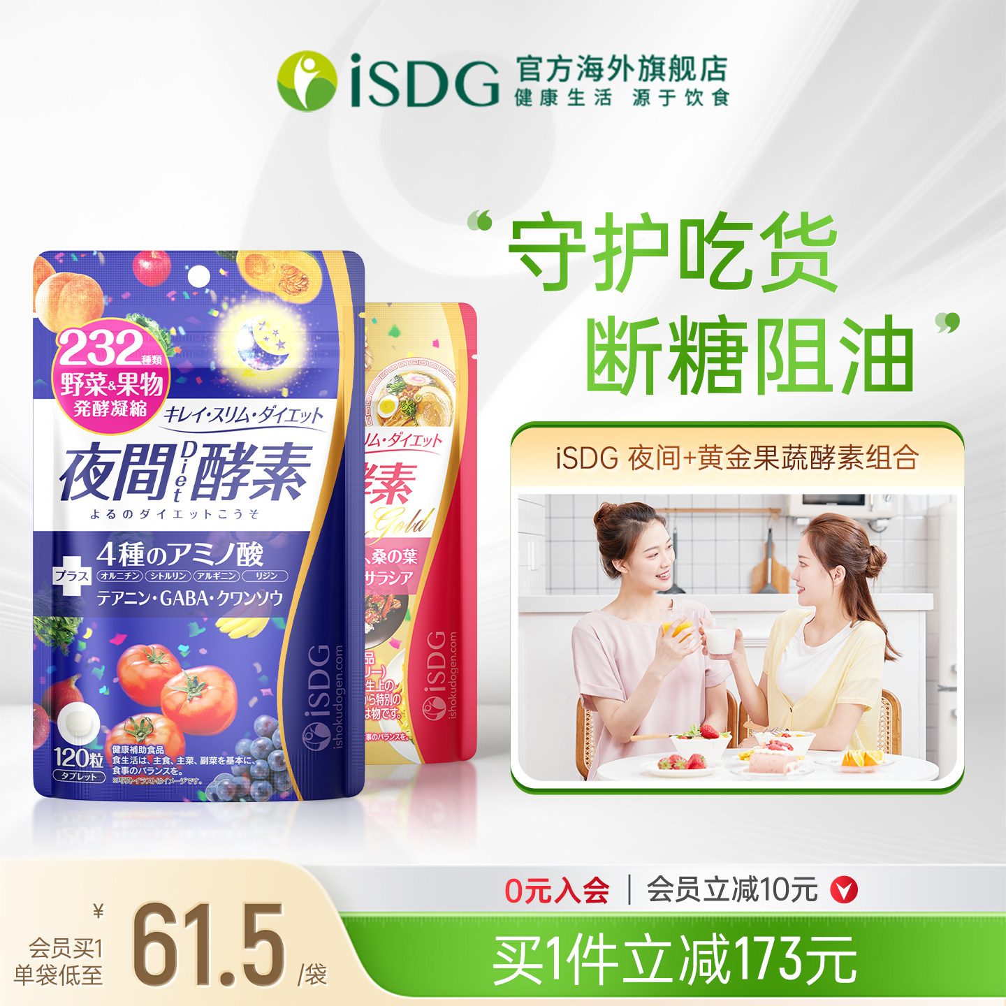 ISDG进口夜间酵素 黄金酵素组合 232种水果果蔬酵素 120粒/袋*2