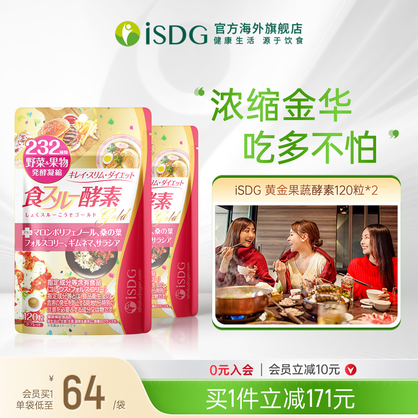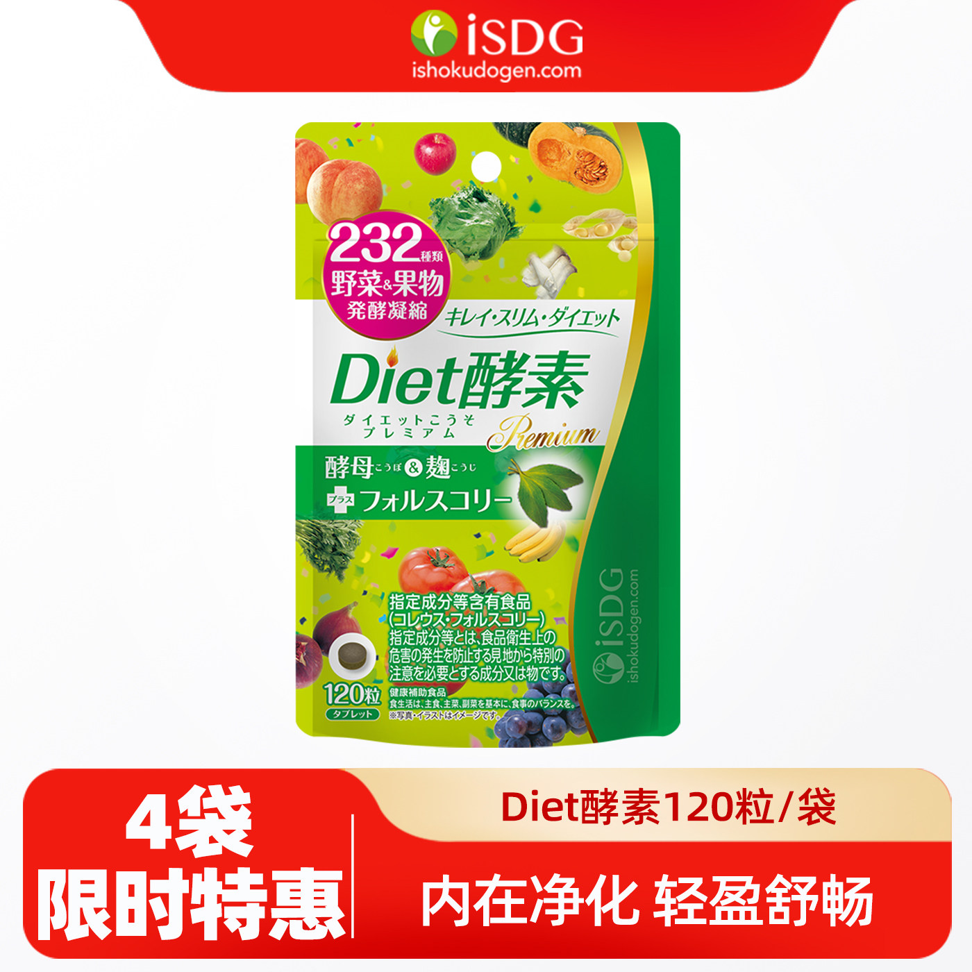 isdg酵素Diet植物果蔬孝素分解酵母餐前阻断非果冻水果酵素120粒