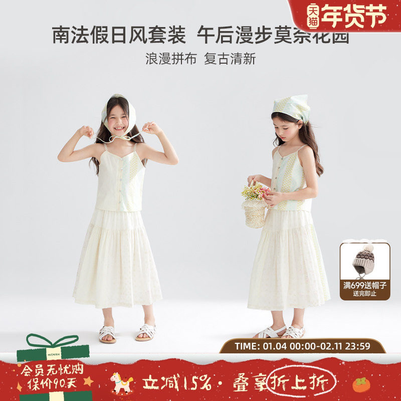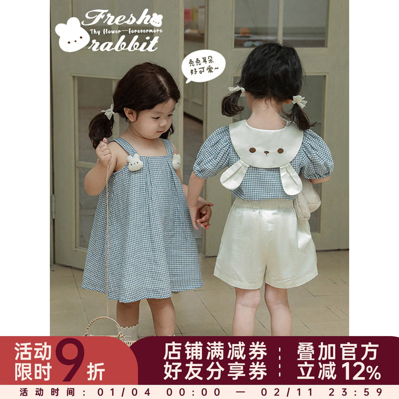 幼悠女童吊带裙2025夏季新款格子娃娃衫宝宝小清新风可爱小兔短裤