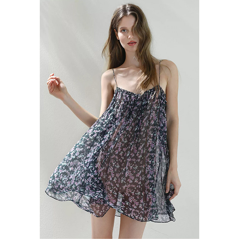 梵高七月夏季新款 小清新碎花宽松甜美可爱睡裙居家裙背心吊带裙