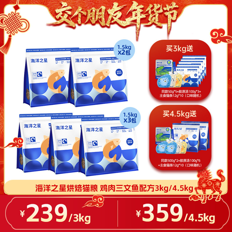 海洋之星低温烘焙鲜肉猫粮鸡肉三文鱼美毛后生元益肠胃幼猫成猫粮