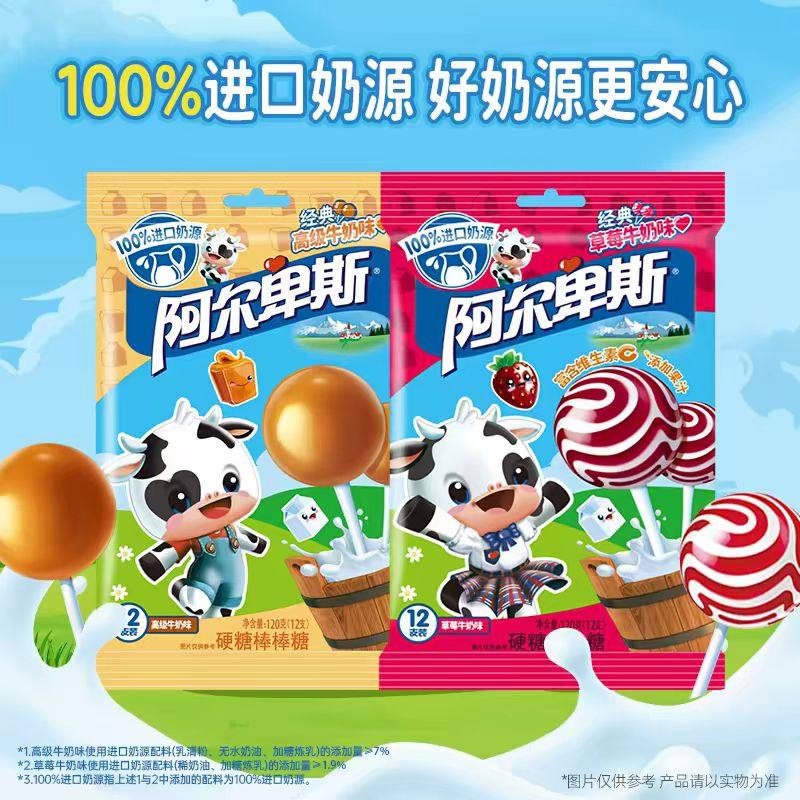 阿尔卑斯棒棒糖12支牛奶儿童小零食糖果散装批发休闲食品混合高级
