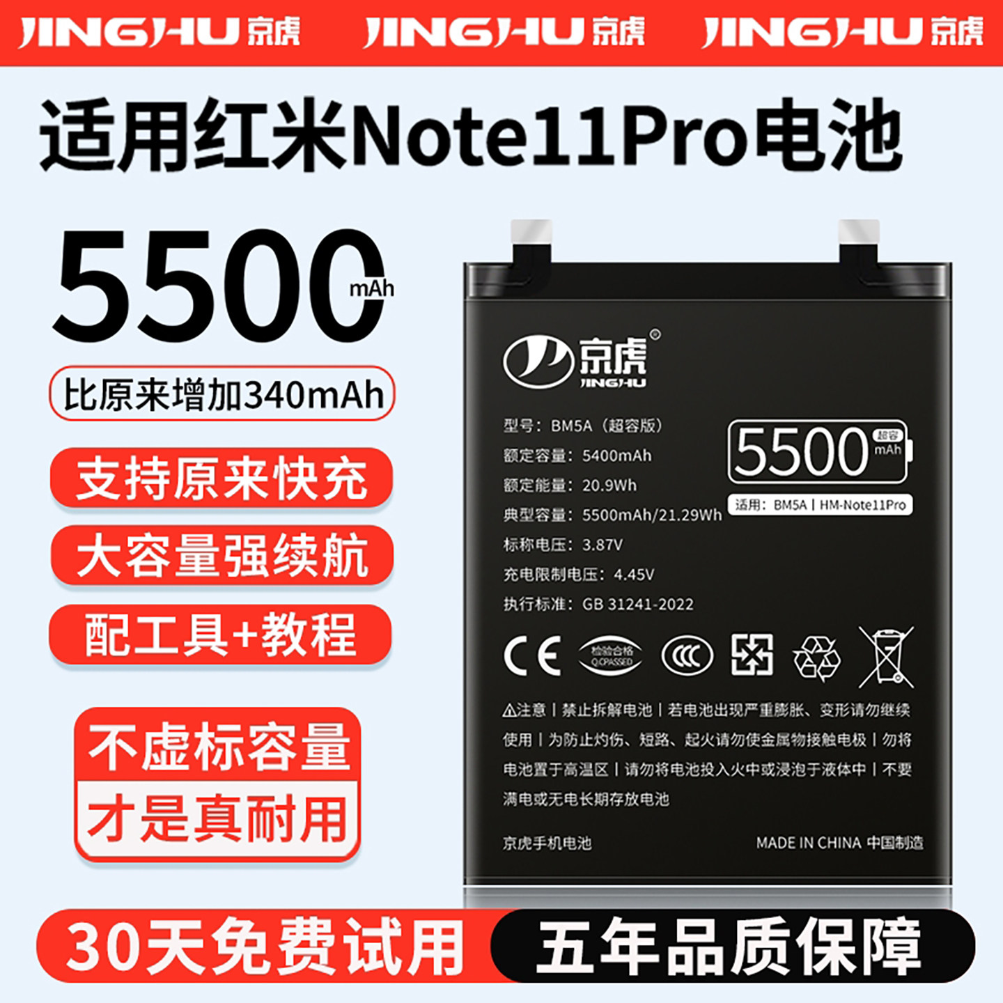 (增加续航)品质京虎适用于红米Note11Pro电池扩容大容量可拆卸内置手机电池高容增强版魔改更换旗舰版非原装