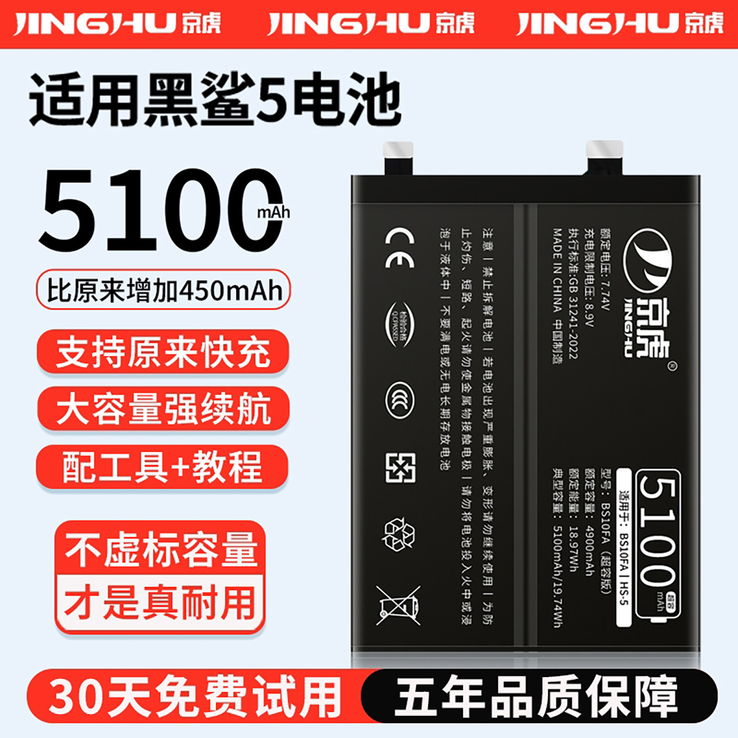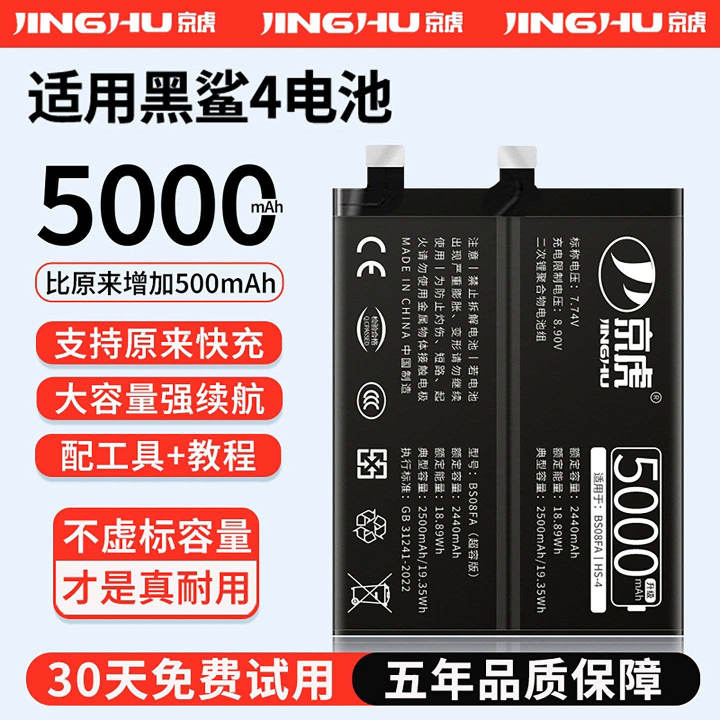 (增加续航)品质京虎适用于黑鲨5电池扩容大容量可拆卸内置手机电池高容增强版电板魔改更换旗舰版电芯非原装