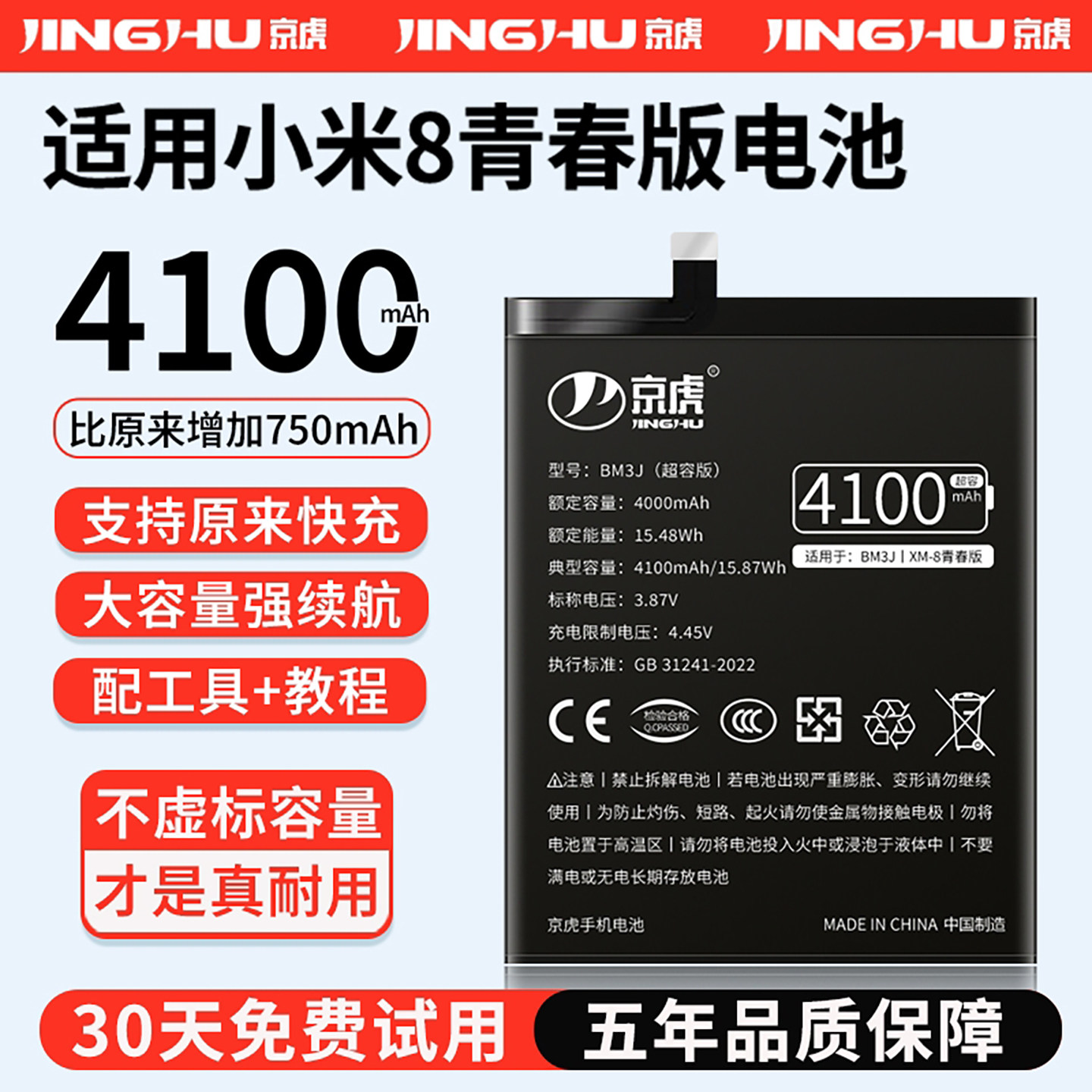 (增加续航)品质京虎适用于小米8青春版电池扩容大容量可拆卸内置手机电池高容增强版魔改更换旗舰版非原装