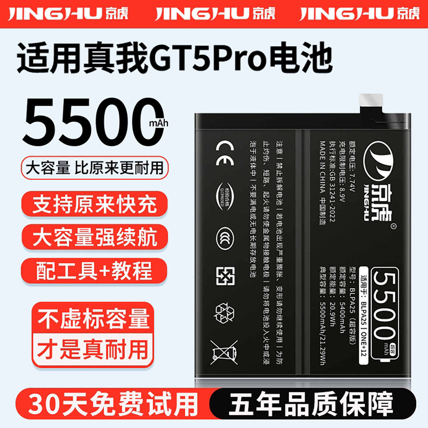 (增加续航)品质京虎适用于真我GT5Pro电池扩容大容量可拆卸内置手机电池高容增强版电板魔改更换旗舰版非原装