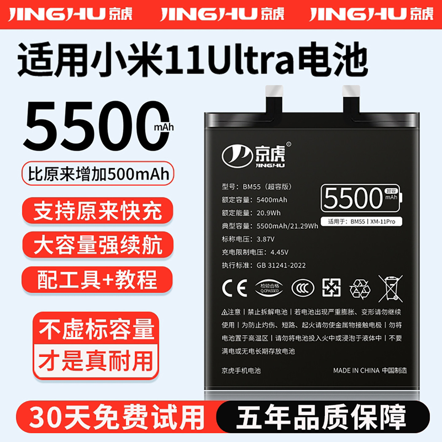 (增加续航)品质京虎适用于小米11ultra电池扩容大容量可拆卸内置手机电池高容增强版魔改更换旗舰电芯非原装