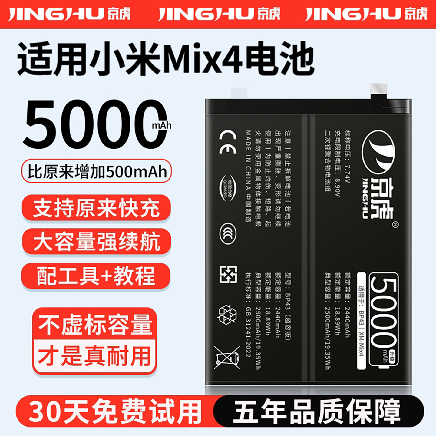 (增加续航)品质京虎适用于小米Mix4电池扩容大容量可拆卸内置手机电池高容增强版电板魔改更换旗舰版非原装