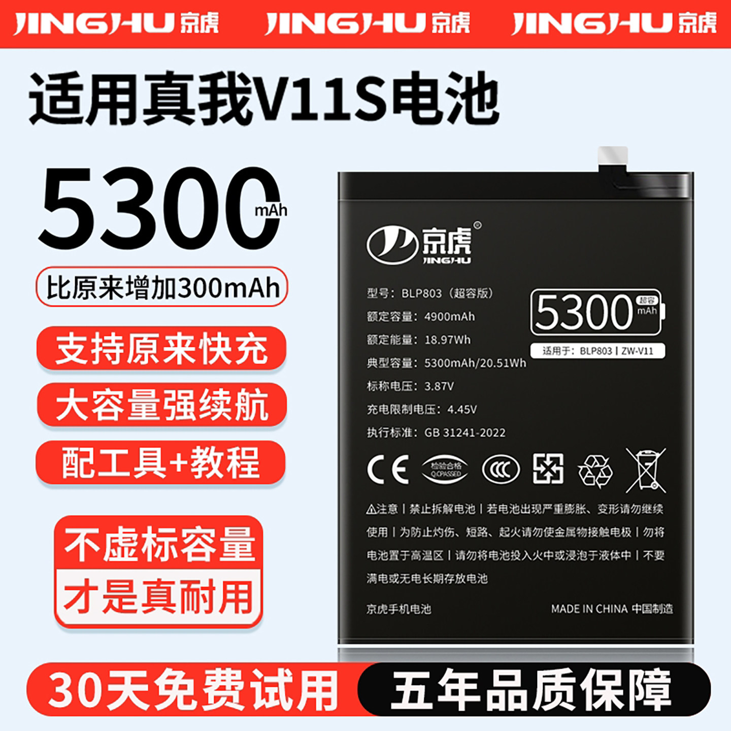 (增加续航)品质京虎适用于真我V11S电池扩容大容量可拆卸内置手机电池高容增强版魔改更换旗舰版BLP803非原装