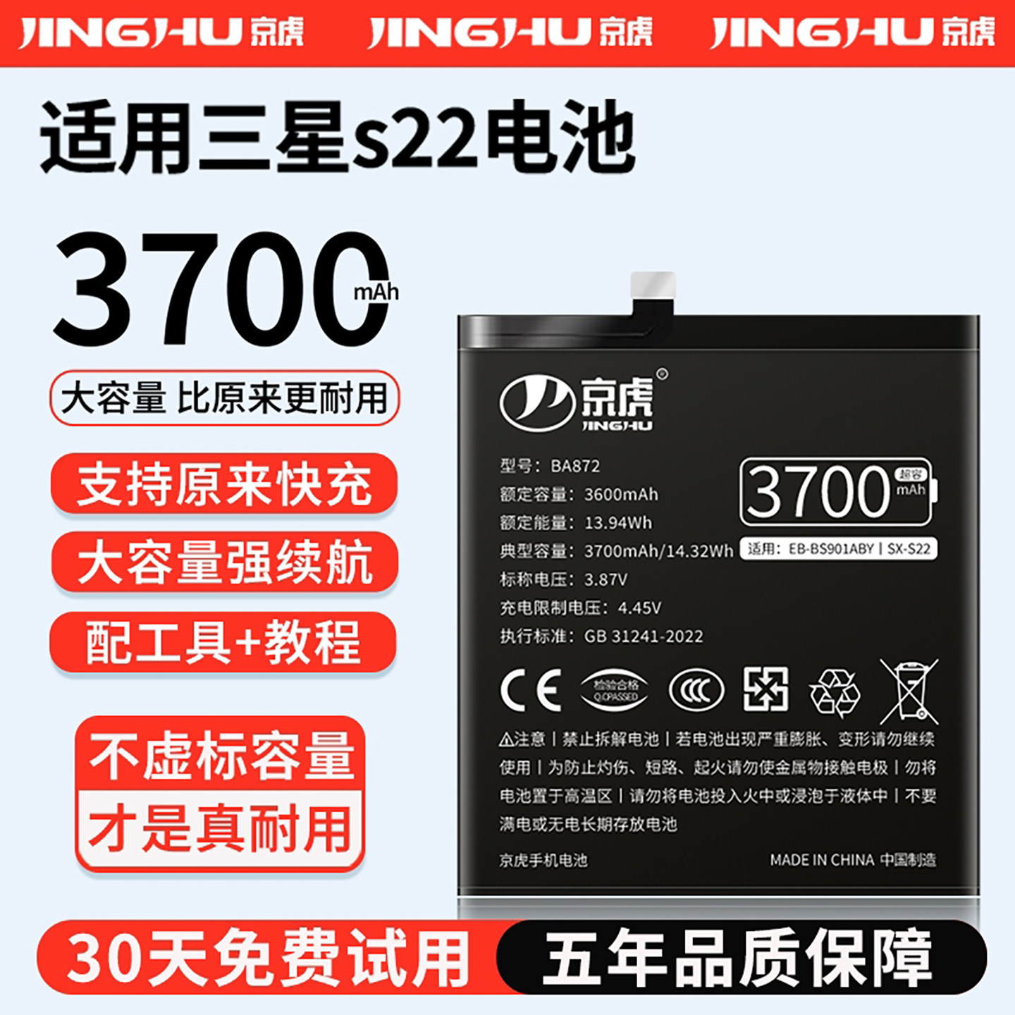 (增加续航)品质京虎适用三星S22电池扩容大容量可拆卸内置手机电池高容增强版电板魔改更换旗舰版EB-BS901ABY