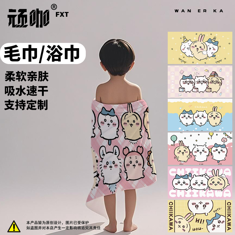 chiikawa吉伊卡哇儿童浴巾毛巾沙滩游泳巾游泳毛巾儿童海边沙滩巾