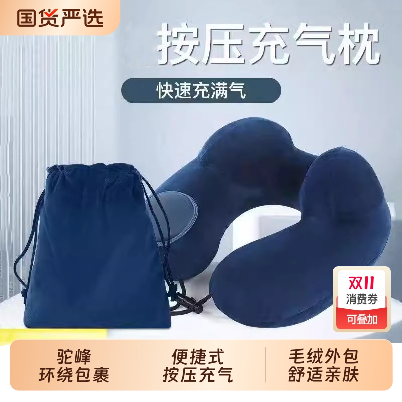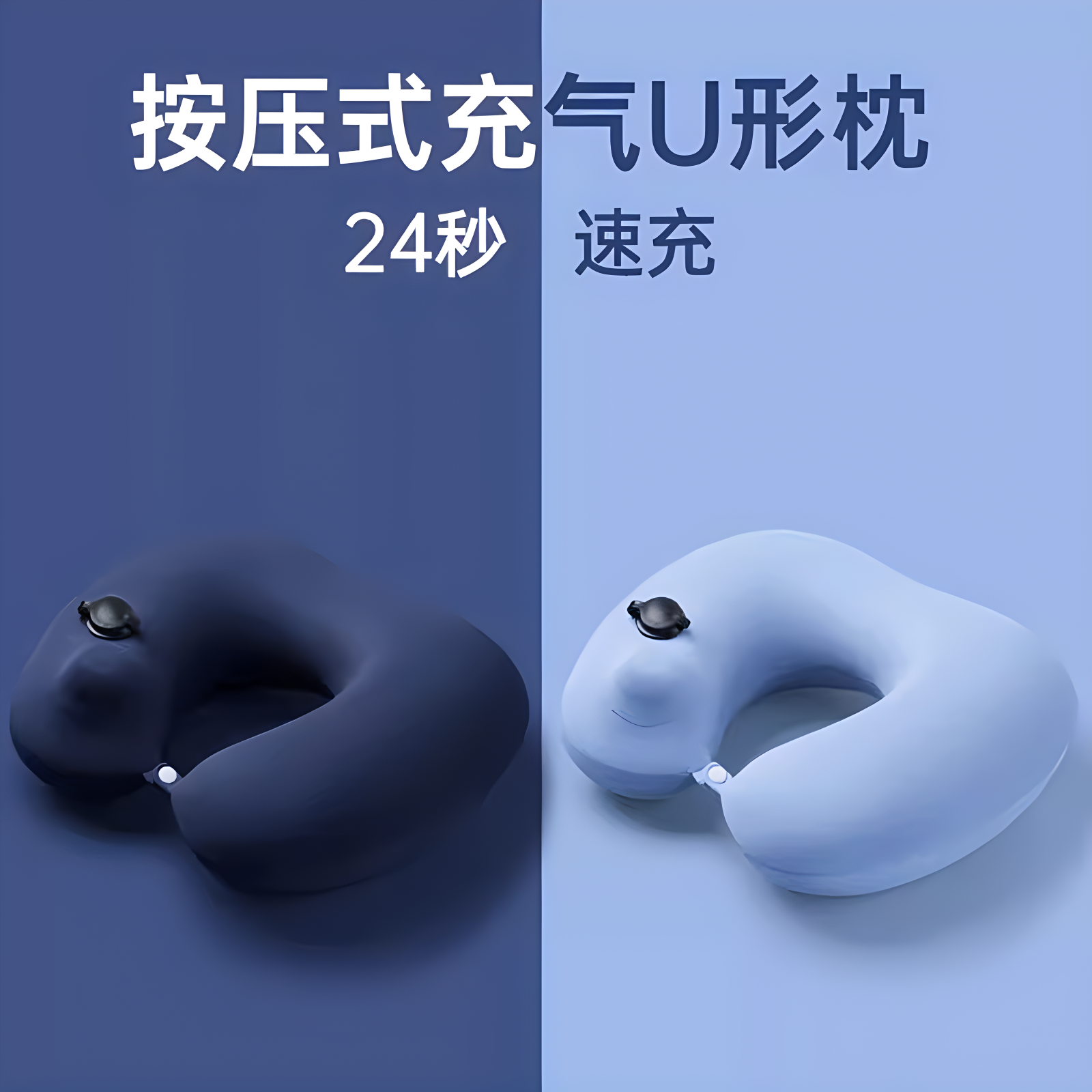 U型枕充气便携护颈按压充气u型枕坐车飞机神器旅行枕头颈椎脖枕护