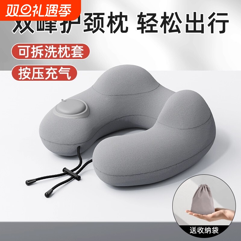 坐飞机充气u型枕睡觉神器护颈枕按压式旅行枕头便携长途必备高铁