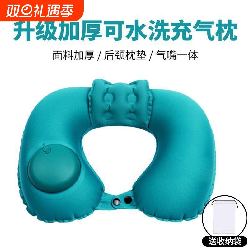 按压式充气便携U型枕长途旅行枕头靠枕加厚颈椎护颈夏季折叠支撑