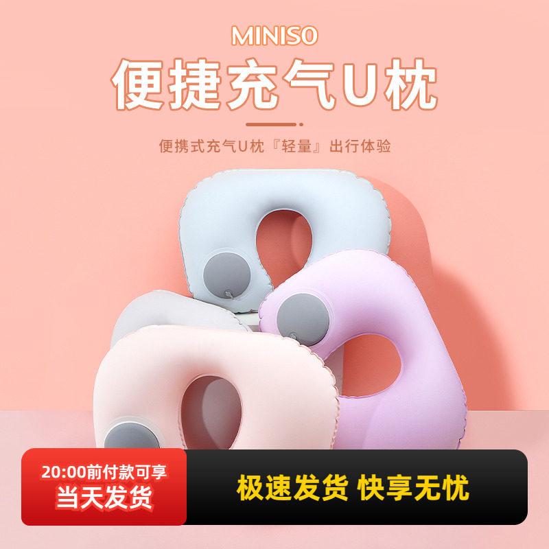 miniso名创优品便携充气U枕旅行枕头旅游护颈枕充气按压式u形枕