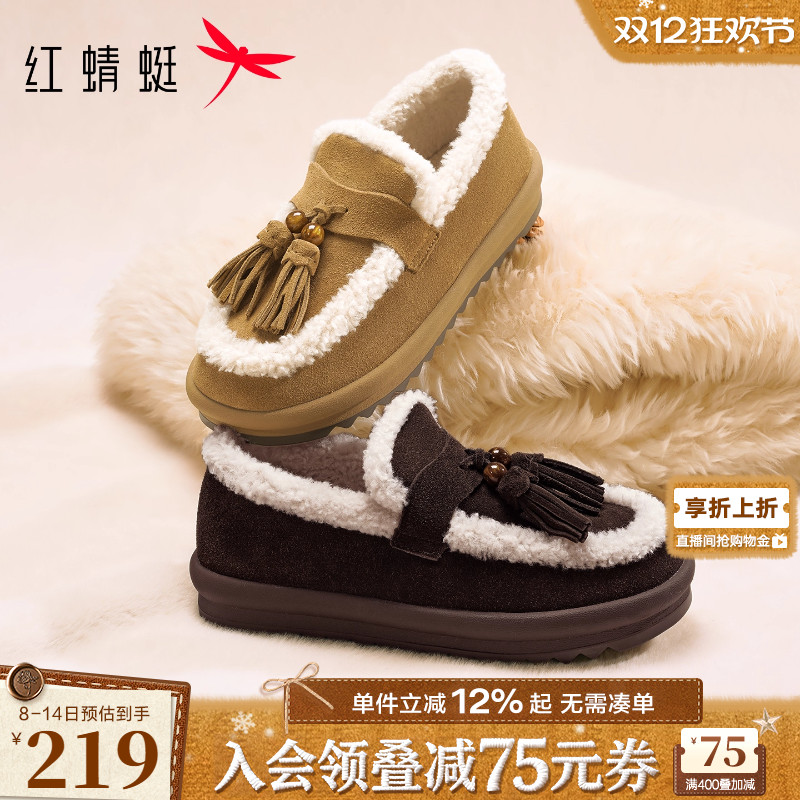 红蜻蜓雪地靴女2025冬季新款女鞋一脚蹬毛毛鞋保暖加绒勃肯鞋棉鞋