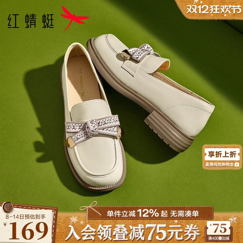 红蜻蜓厚底乐福鞋女2025春季新款女鞋一脚蹬单鞋复古英伦风小皮鞋