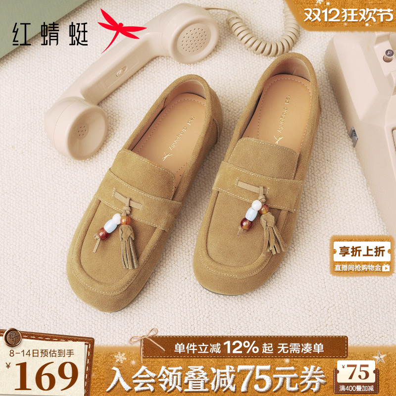 红蜻蜓勃肯鞋女2025秋冬新款女鞋一脚蹬乐福鞋软底袋鼠鞋平底单鞋
