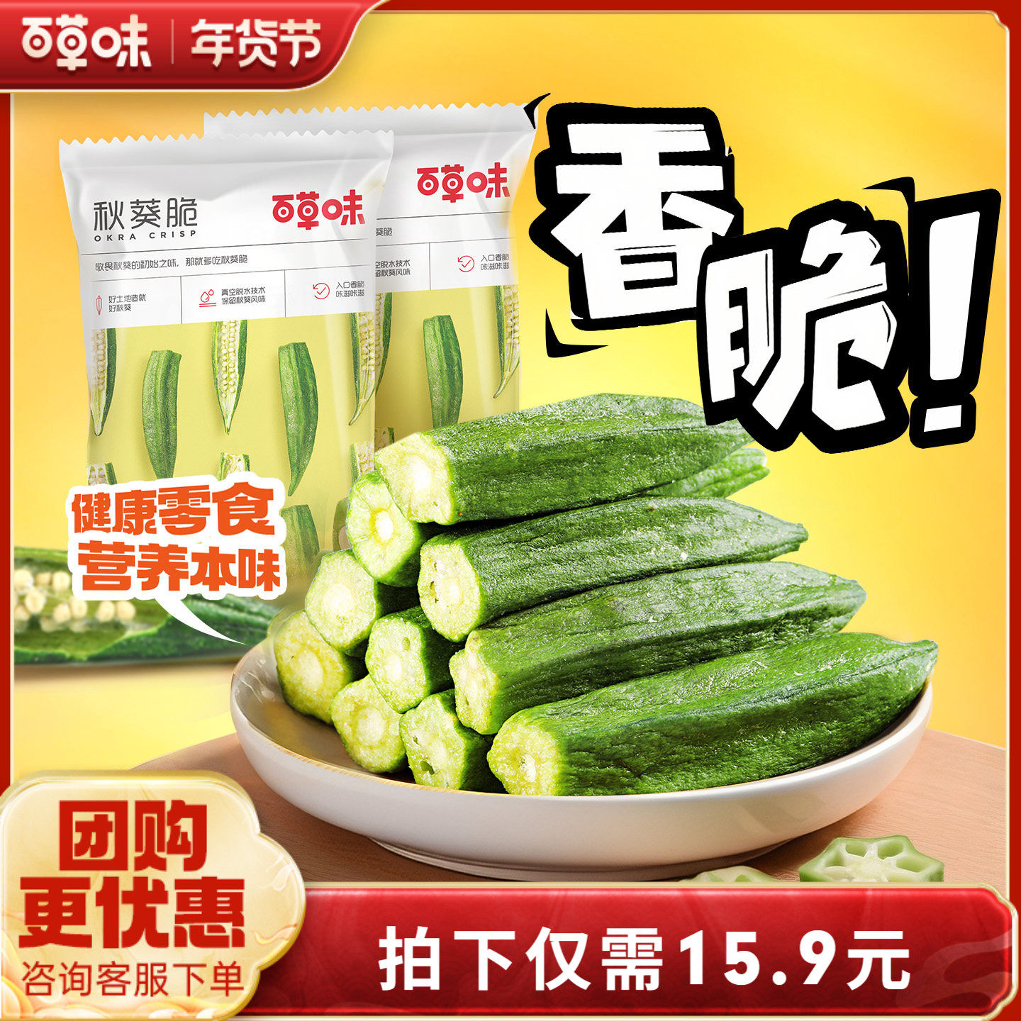 比比赞秋葵脆即食果蔬脆蔬菜干新鲜黄秋葵水果干小零食小吃休闲BY