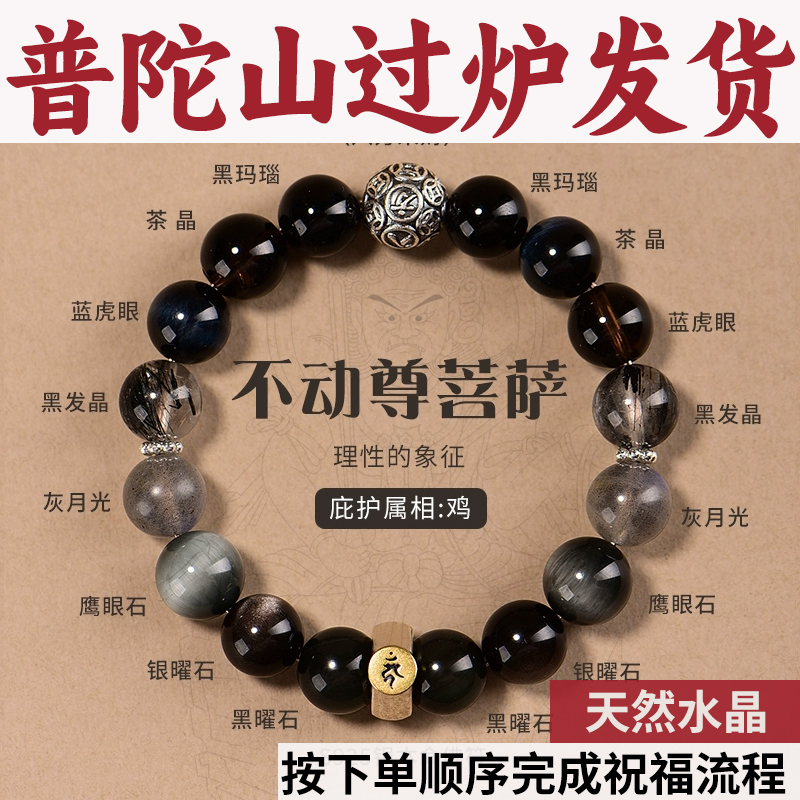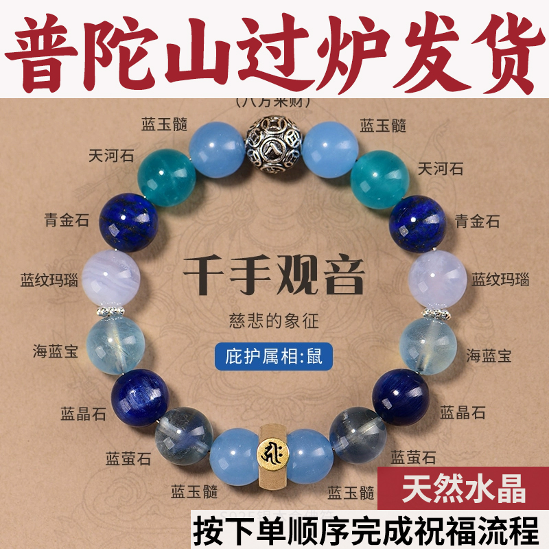 普陀山生肖本命佛守护手串不动尊菩萨大势至菩萨水晶纯银千手手链