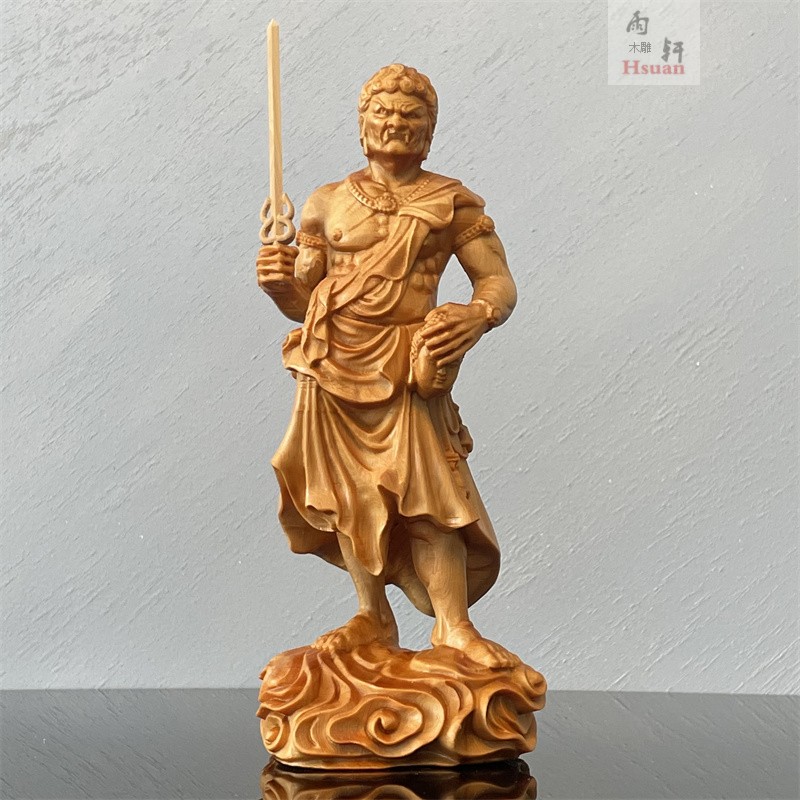 木雕不动明王佛像摆件实木雕刻不动尊菩萨生肖鸡守护神工艺品摆件