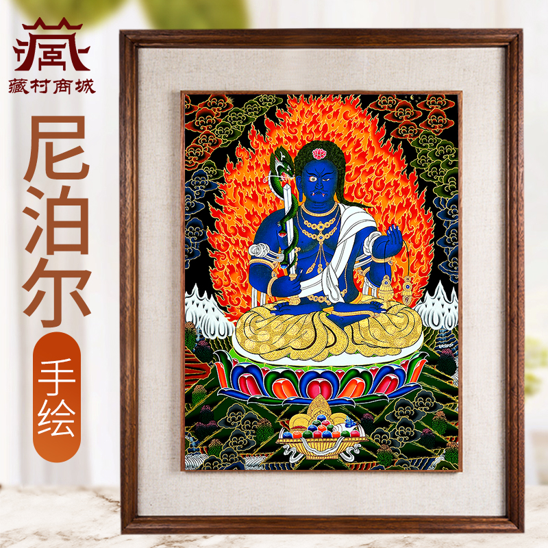 藏村尼泊尔进口不动明王手绘唐卡室内家用不动尊菩萨墙壁装饰挂画