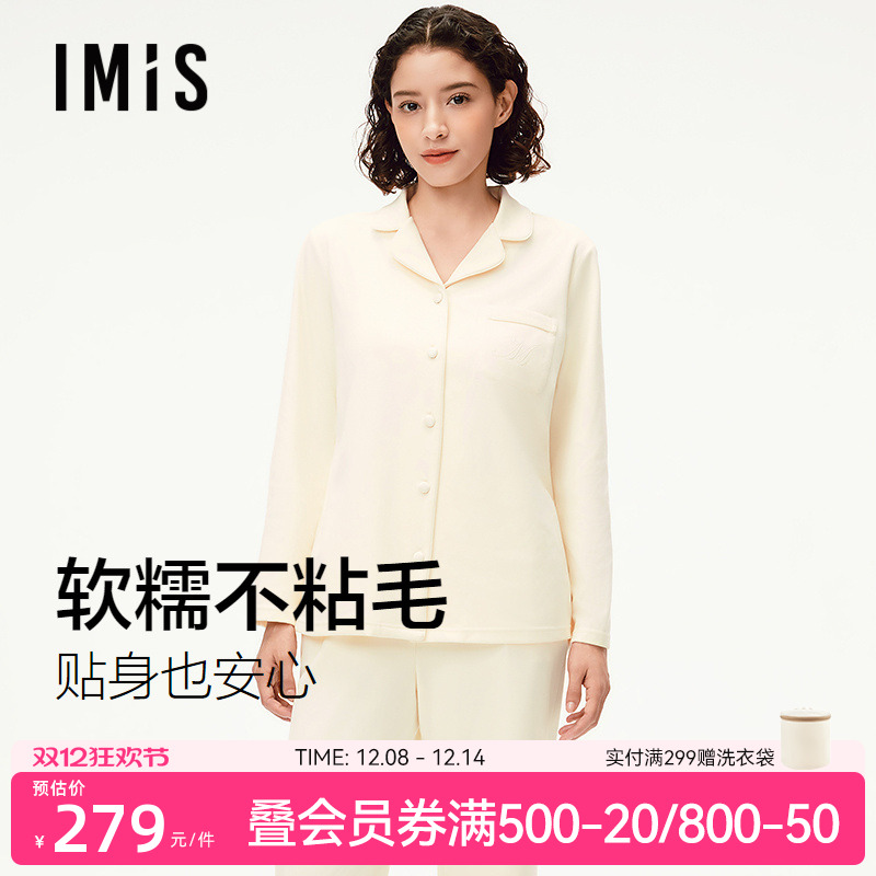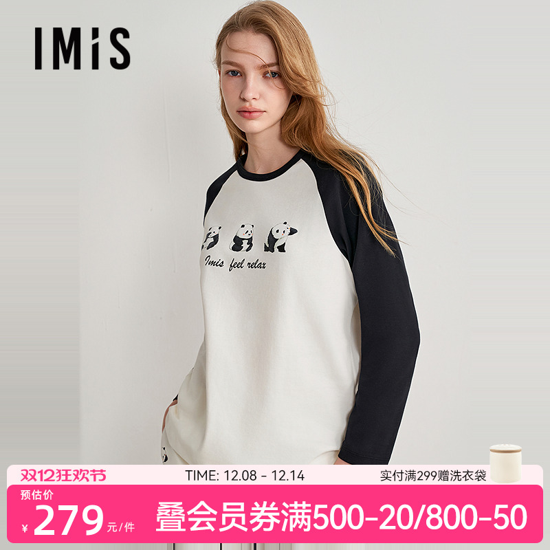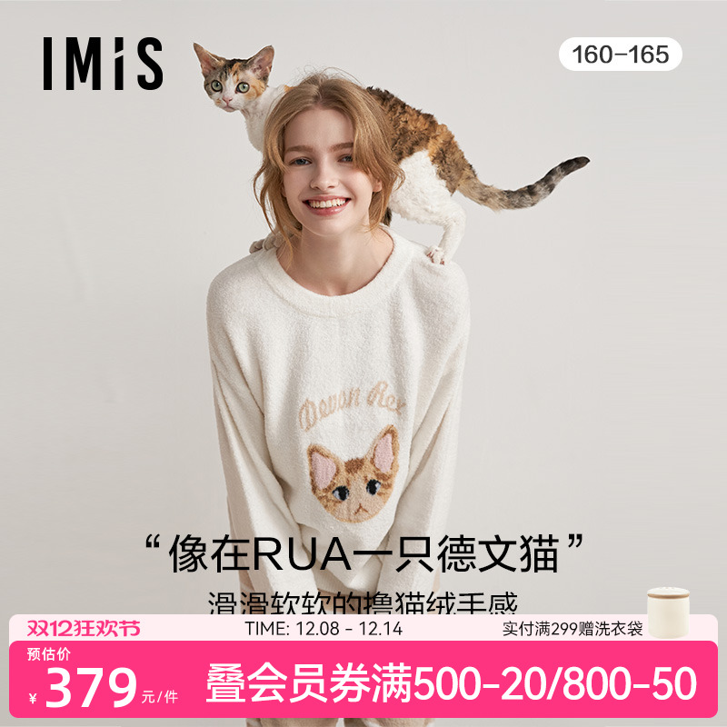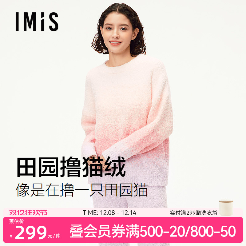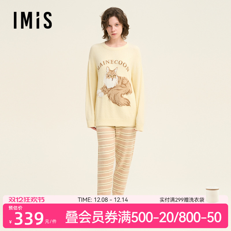 爱美丽猫肚皮空气暖云柔羊毛圆领套头长袖上衣长裤套装IM74BUM1