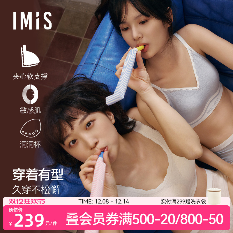 爱美丽IMIS小胸聚拢内衣女无钢圈上托洞洞杯透气薄款文胸IM17AMN1