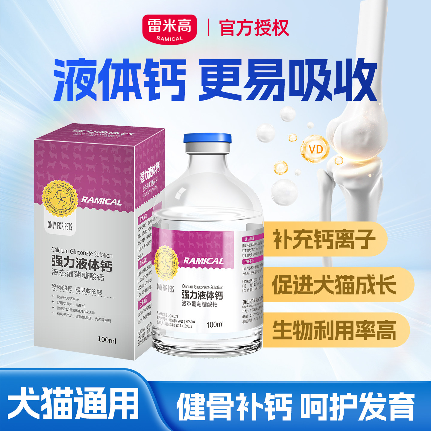雷米高液体钙 宠物钙片泰迪幼犬猫咪狗萨摩耶金毛大中小型犬健骨